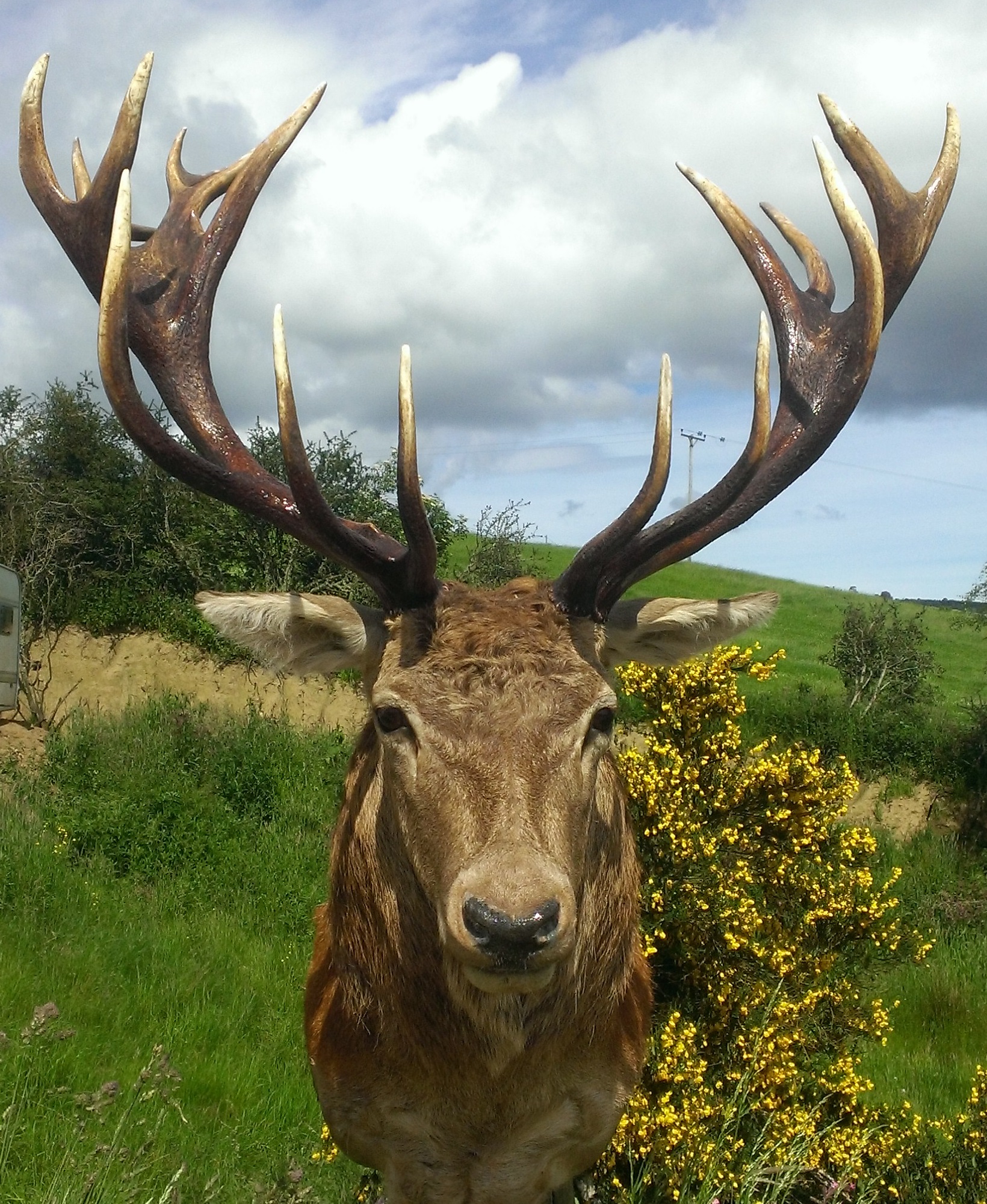Red Stag taxidermy game heads are in fashion and becoming more valluable , please scroll through as there is only a few from time to time made up for sale and done to the highest standard, leading taxidermist Robert Bartlett is a leading game head specialist especially red stag taxidermy ,sika stag taxidermy, Roe buck taxidermy,and most other deer taxidermy, also red stag, roe buck,sika stag taxidermy mounts can be made up to order with or without buyers as i have a source of capes and deer antlers to cater for demand, i havea supply of red stag antlers and sika stag antlers on the red stag antlers section and sika stag antler section and roe buck antlers section, please contact by phone or email for more info , please click on next at bottom of page to search more as the listing is showed by highest to lowest, Red stag monarchtaxidermy in the uk, monarch of the glen stag.