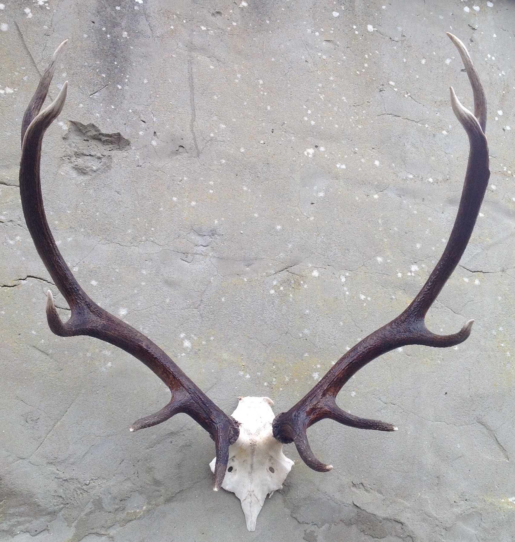 Red deer antlers with a nice shape colour and tines.