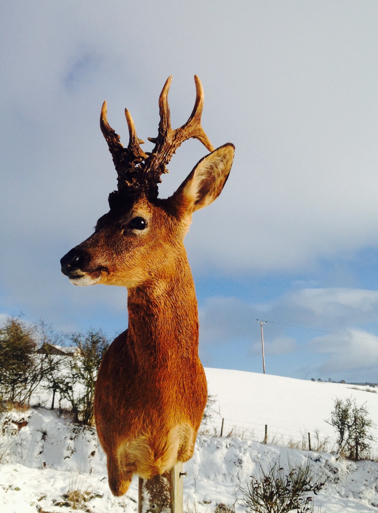 A monster roe buck taxidermy mount of the highest quallity set on afull shoulder right turn pose, this roe buck is definately a head turner and with its bright red summer coat and world class taxidermy pose along with the magnificent antlers, absolute stunner. Sold Sold Sold